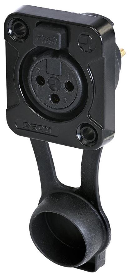 The NC3MPR-HD is a 3-pole Male XLR Chassis Connector for outdoor use, with latch locking device, silver over nickel plated brass contacts. It has p...
