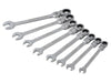 The BlueSpot Flexible Ratchet Spanners feature 180° pivoting ratchet ring heads. Manufactured from chrome vanadium steel, heat treated and nickel plated for increased durability. They have a fully polished mirror finish. With 8° ratcheting increments to make the set ideal for use in tight spaces.