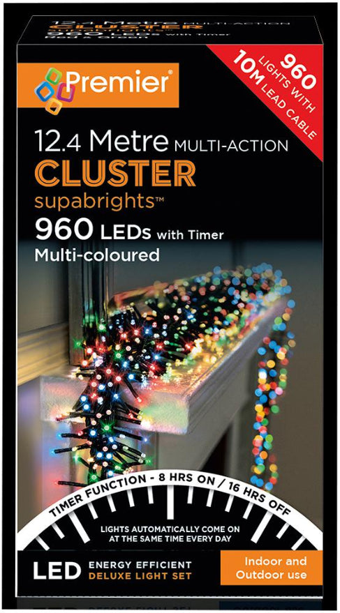 Multi Action Multicolour Cluster Christmas Lights with Timer