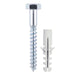 - A traditional heavy duty woodscrew with a nylon plug for masonry applications.
