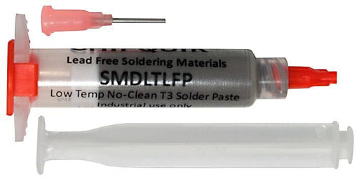 No-clean, lead-free, low temperature solder paste in syringe applicator with plunger and tip.Low melting point (138°) allows lower heat setting and...
