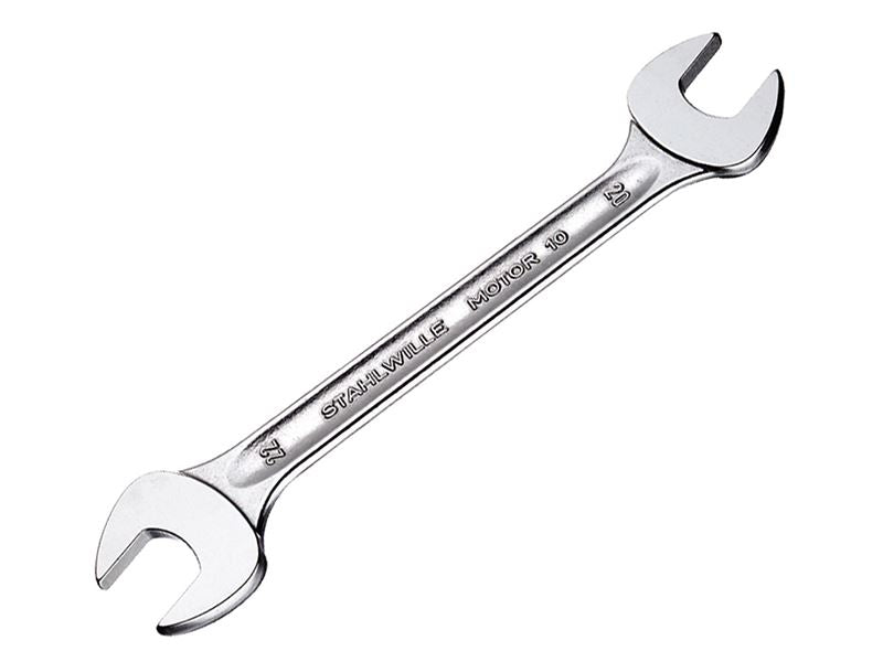 Stahlwille Series 10 Double Open Ended Spanner. Metric, made from drop forged from high-grade special Chrome Alloy Steels and Chrome Plated. Manufactured to DIN 3110, ISO 10102.