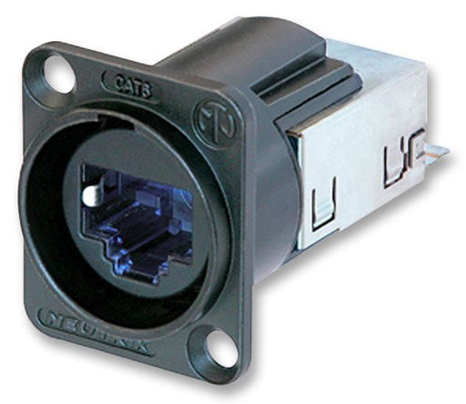The NE8FDP from Neutrik is a RJ45 feed through receptacle in D shape metal flange. The chassis connector is shaped to fit into standardized panels ...