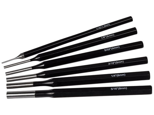 6 piece parallel pin punch set, ideal for driving out rivets, bolts and pins.Manufactured from heat treated chrome vanadium steel for extreme stren...