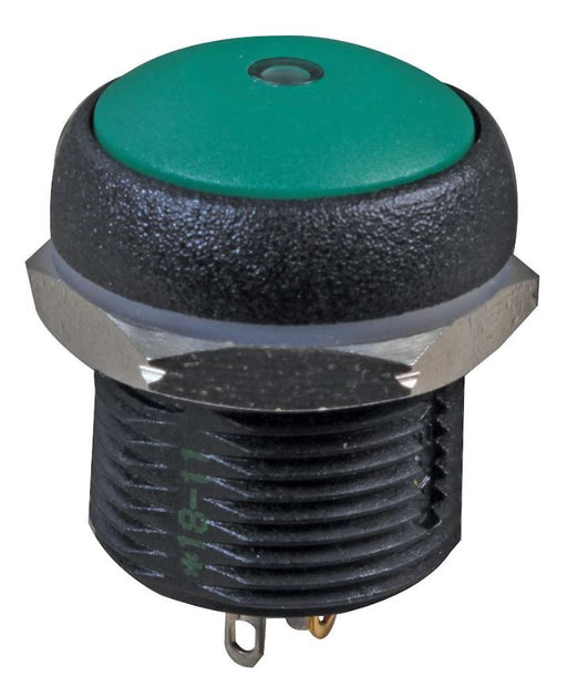 The 18535CD is a single-pole double-throw (SPDT) Snap-action Pushbutton Switch with solder lug terminals, 6.35mm threaded bushing and ON-Momentary ...