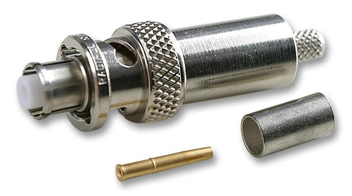 The R316072000 is a crimp BNC HT Straight Plug for use with KX15, RG141 and RG58 RF coaxial cables. It has nickel-plated body with silver-plated ce...