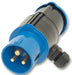 A rewireable inline T connector with a tough thermoplastic moulded body that is IP44 rated when mated. It features an inline plug and socket with a rewireable cable out let on the side that's ideal for external floodlights, emergency lights, disco equipment, marquee uplights or fan blowers.
