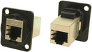 Shielded FTP Cat6 RJ45 to RJ45 Feedthrough Panel Mount Connector, Black Metal XLR Frame
