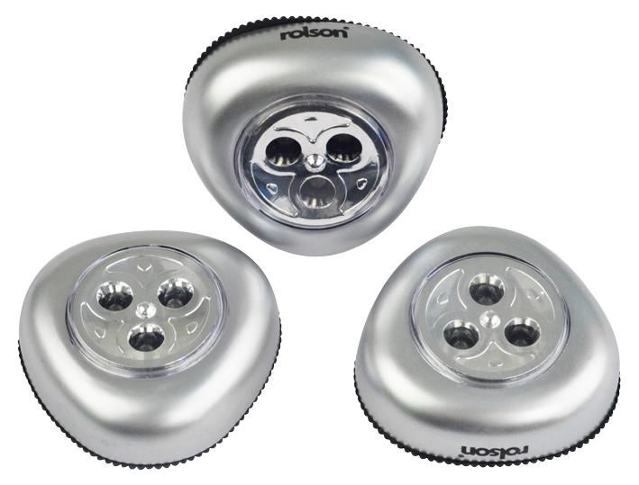 3 Piece Battery Powered LED Push Light Set, Stick On