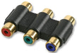 3 Way Phono / RCA Coupler with RGB Coloured Gld Plated Sockets